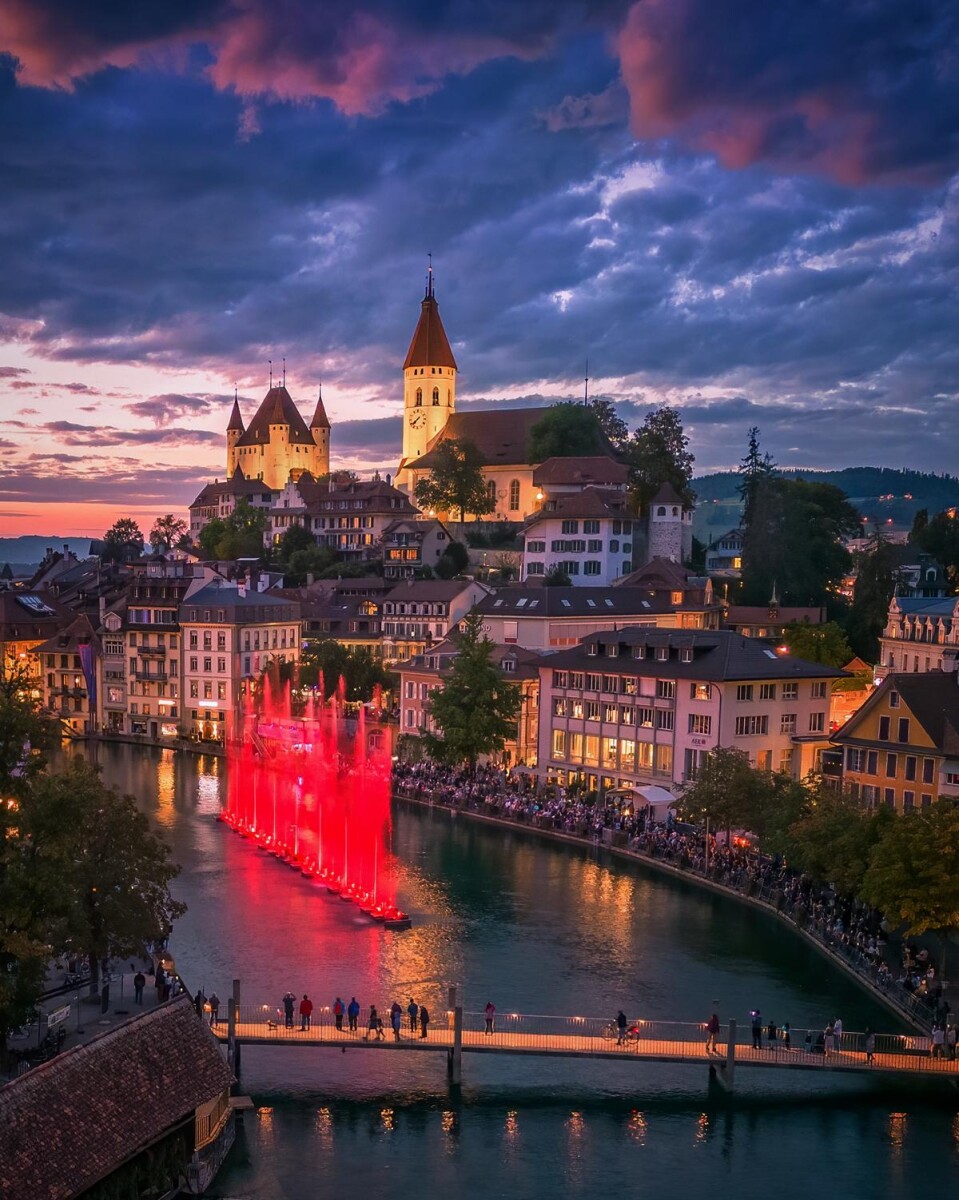 Der Thuner Wasserzauber ist ein faszinierendes Spektakel aus Wasser, Licht und Musik am Ufer des Thunersees. Von Ende September bis Ende Oktober verwandelt sich die Mühleplatz-Bucht in eine zauberhafte Kulisse, wenn Wasserfontänen synchron zu stimmungsvoller Musik aufsteigen und durch bunte Lichtstrahlen erleuchtet werden. Das kostenlose Event bietet Einheimischen und Besuchern ein magisches Erlebnis, das Groß und Klein begeistert. Die harmonische Kombination aus Natur, Technologie und Kunst macht den Thuner Wasserzauber zu einem unvergesslichen Highlight.
